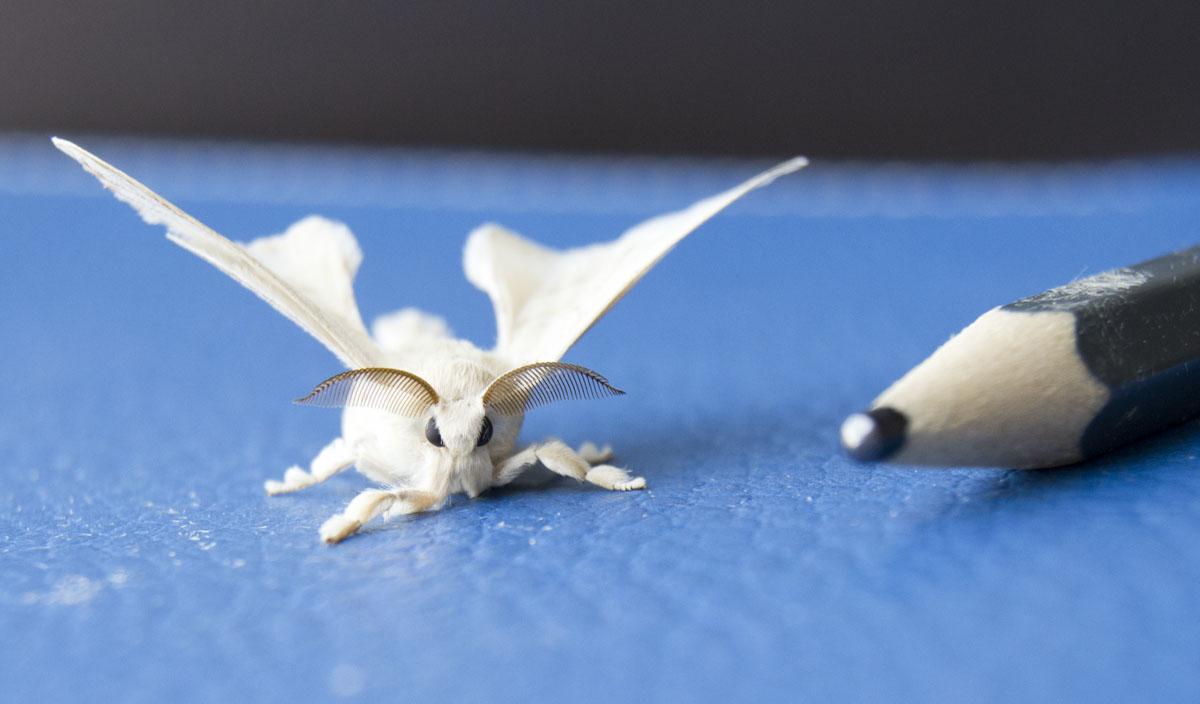 Après avoir passé une dizaine de jours cachés dans leur cocon sous forme de chrysalide, les vers à soie sont arrivés à la dernière étape de leur vie : le papillon. Domestiqués depuis longtemps, les papillons ne volent pas : ils sont trop lourds pour leurs petites ailes. Ils ne se nourrissent pas, ne boivent pas.