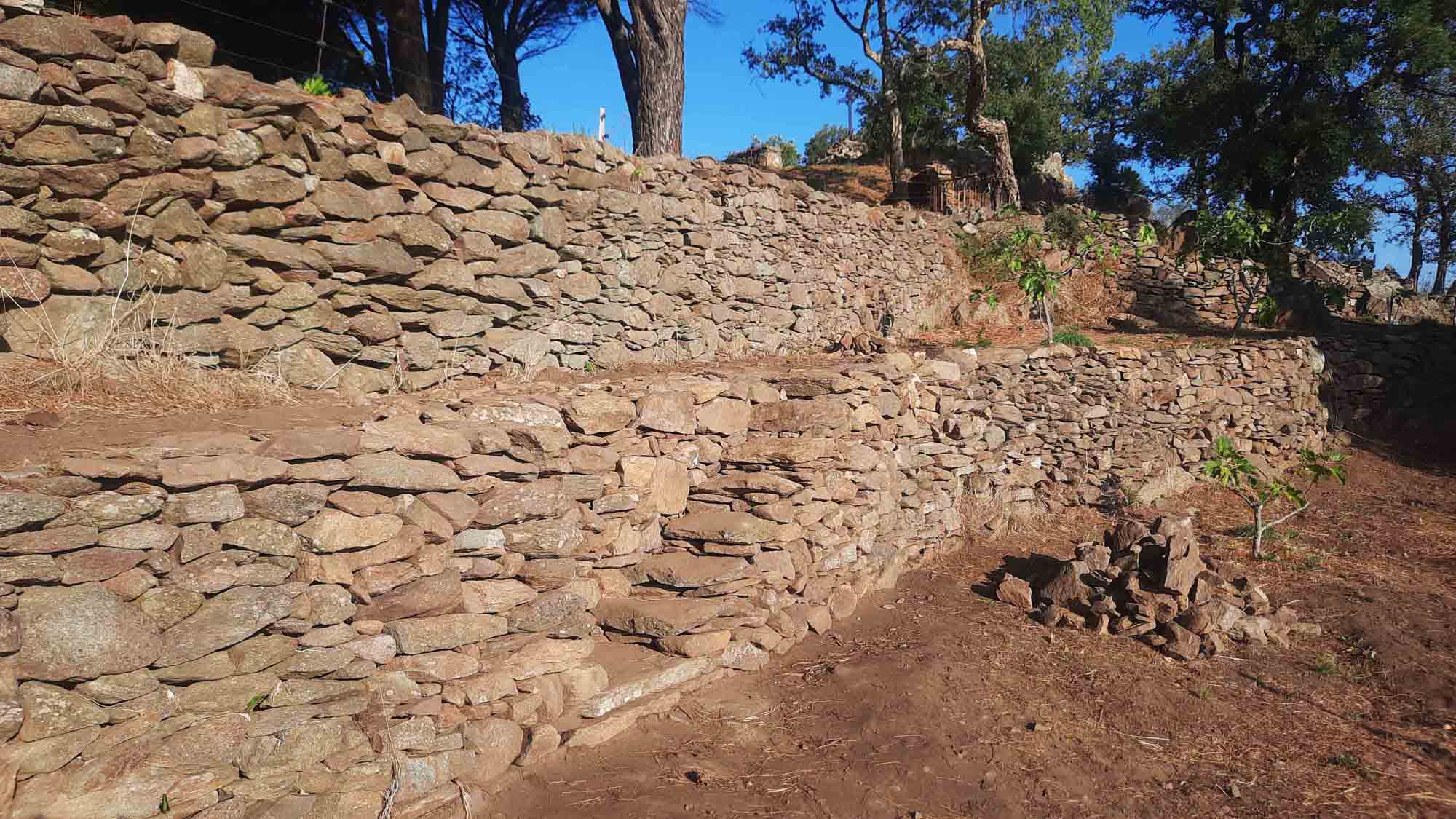 – Un autre mur, non loin du précédent, d’1,20 m de hauteur et 4,40 m de longueur, a été entièrement restauré.
